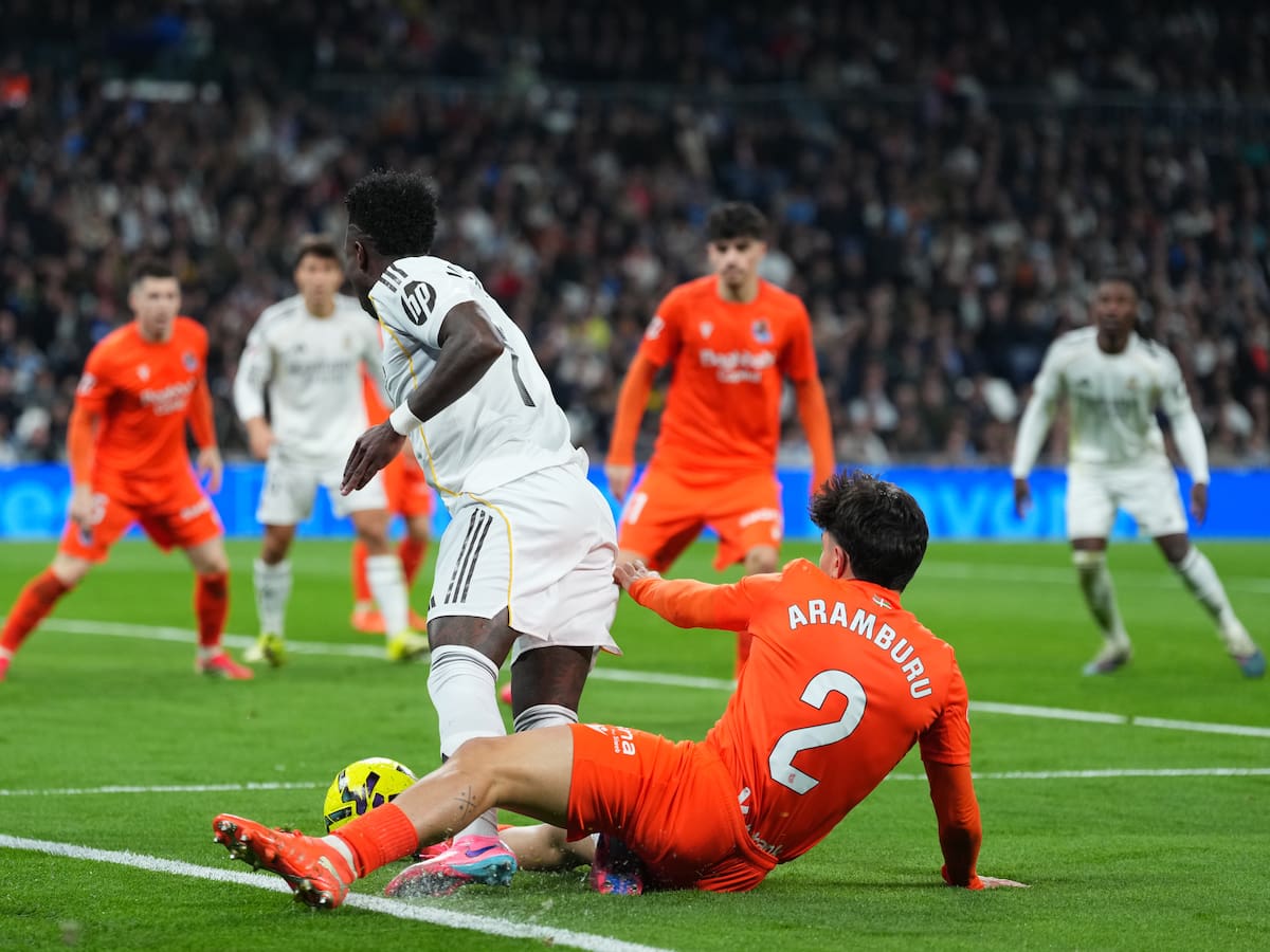 "여기에는 논쟁의 여지가 없다. 여기서는 어떤 접촉이 있기 훨씬 전에 이미 넘어지고 있었다." 전 심판 이투랄데 곤살레스는 마지막 구간에서 레알 마드리드에 유리하게 선언된 두 번째 페널티를 이렇게 평가했다. 스코어 3대1 상황에서 경기에서 두 번째로 비니시우스는 아람부루와의 경합 후 레알 소시에다드 페널티 박스 안에서 넘어졌다. 이투랄데가 설명하듯이, 실제로 아람부루는 브라질 선수를 거의 건드리지 않았다. 전반전에는 더 명확하게 베네수엘라 선수가 흰색 7번 선수를 넘어뜨려 이 선수가 페널티킥을 2대1 득점으로 연결했다.