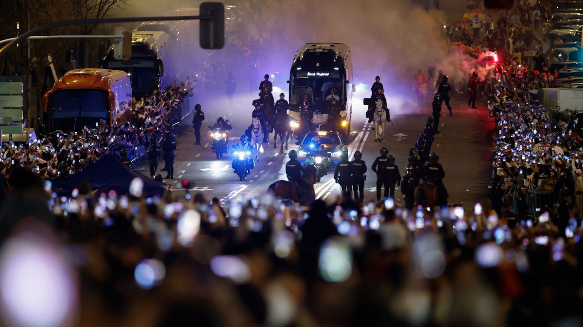 - 수백 명의 팬들이 베르나베우 도착 선수단을 맞이했다.