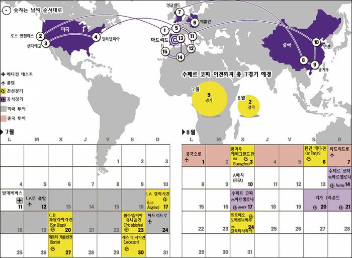 아시아 여행 이후에 팀은 다시 발데베바스에서 훈련을 하며 공식 경기인 스페인 수페르 코파에 대비할 것이다. 수페르 코파에서는 FC 바르셀로나를 만나게 되며 8월 14일에는 산티아고 베르나베우에서, 17일에는 캄누에서 경기를 한다.
