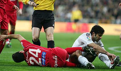 지난 주 일요일에 있었던 레알 마드리드 대 사라고사의 경기중 사라고사 수비수 세사르가 피구와 격렬한 접촉 후 무릎 인대에 부상을 입어 6개월에서 8개월간 결장이라는 진단을 받았다.