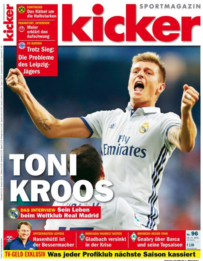 미드필더 토니 크로스가 독일 키커(Kicker)와 인터뷰를 가졌다.