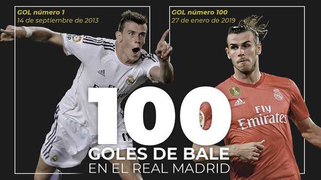 베일, 레알 마드리드 소속 통산 100골 달성