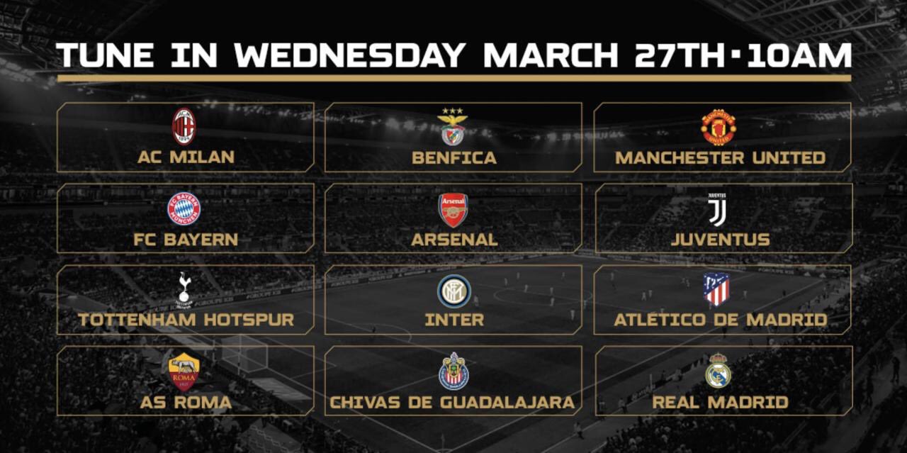레알 마드리드와 함께 토트넘, 아틀레티코 마드리드, 인테르, 유벤투스, AC밀란, 맨체스터 유나이티드, 바이에른 뮌헨, 아스널, 벤피카, 로마, 과달라하라가 참가한다. 대회 일정은 3월 27일에 공개된다.