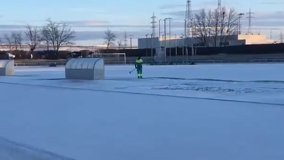 코파 델 레이 경기 당일 강우 예보에도 불구하고, 레알 마드리드를 환영하기 전날 우니오니스타스 홈구장에 눈이 덮였다.