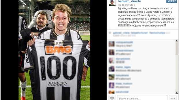 아틀레티코-MG에서 100경기 출장을 한 베르나르드