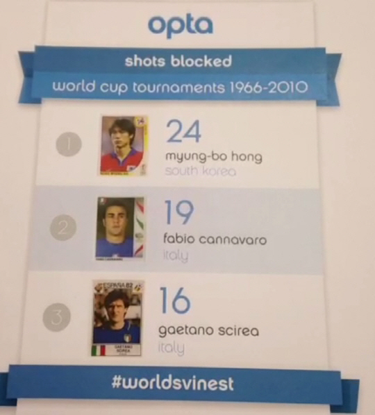 역대 월드컵최대 블로킹1위...홍명보