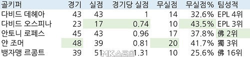 데헤아 선수가 과소평가 받는 골키퍼 1위를 차지했네요