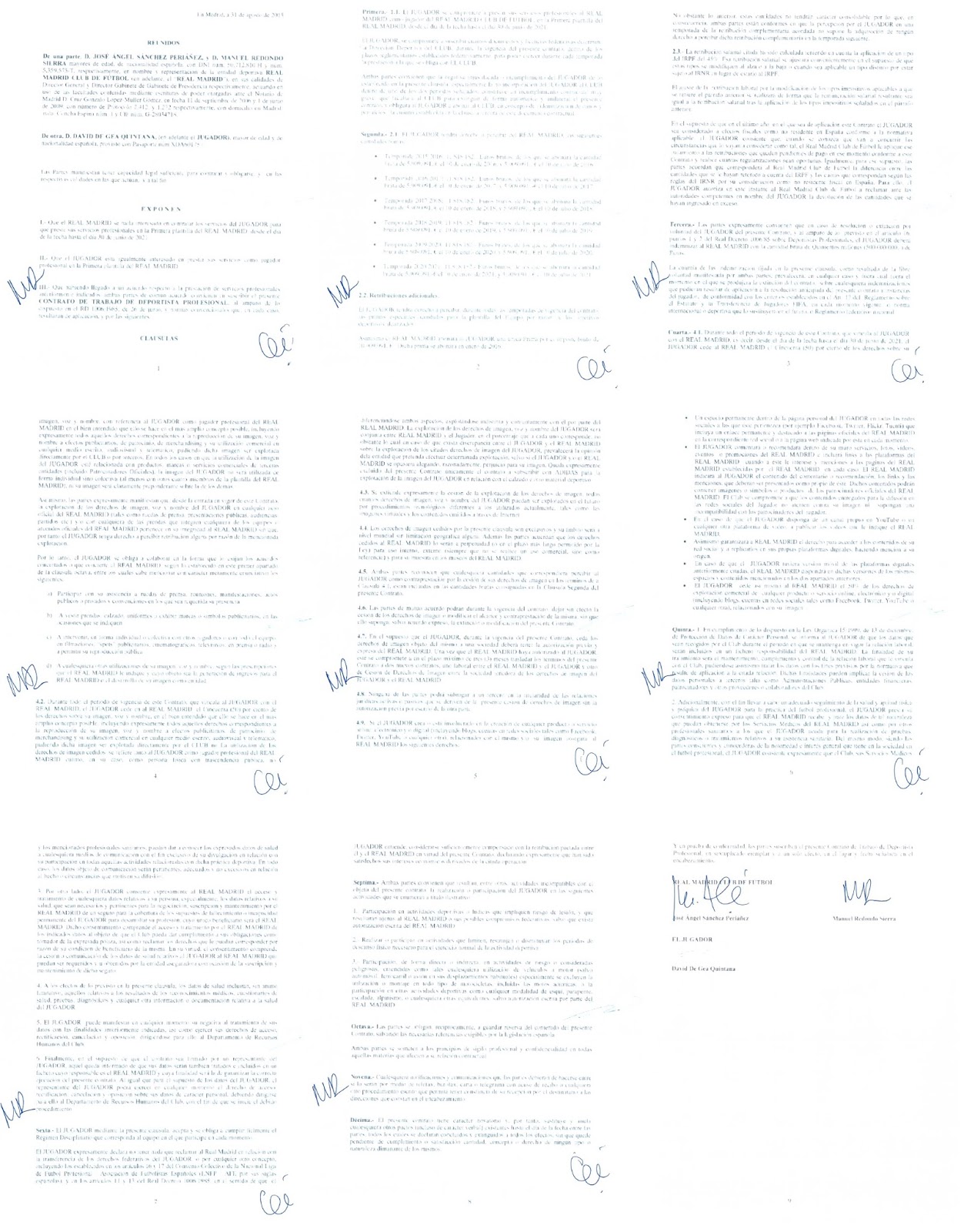 2015년 여름 레알 마드리드 이적에 합의했으나 무산된 다비드 데 헤아의 계약서가 풋볼 리크스를 통해 유출되었습니다. 호세 앙헬 산체스 총괄부장과 마누엘 레돈도 구단 실장의 서명이 각 장마다 기재되어있습니다.