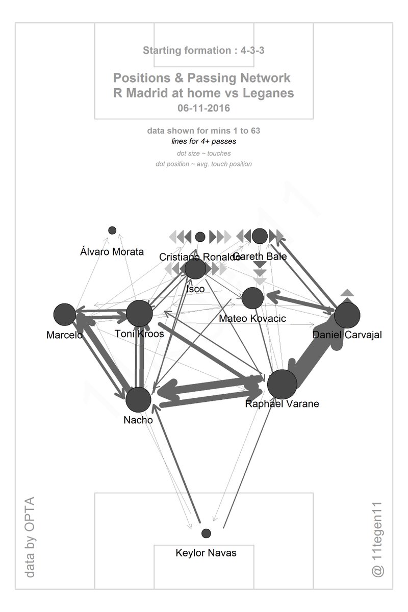 2) 4-5-1에 가까웠던 레가네스의 수비가 중원에서 수적 우위를 점한 상황에서 코바치치가 공을 소유하지 않았을 때 활로를 뚫어줄 만큼의 좋은 포지셔닝이 아니었던 점