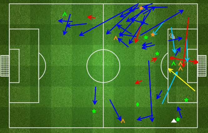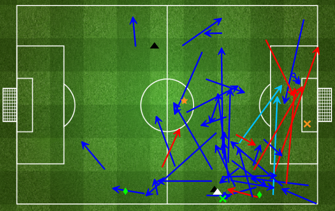 이 덕에 크로스는 좀 더 앞에서 활동할 수 있었습니다. 볼 받으러 내려갈 필요가 없었으니까요. 그래서 적은 점유율을 가지고도 더 위험한 상황을 연출할 수 있었고, 공격수들이 골문 앞에서 많은 찬스를 만들 수 있었다고 봅니다.