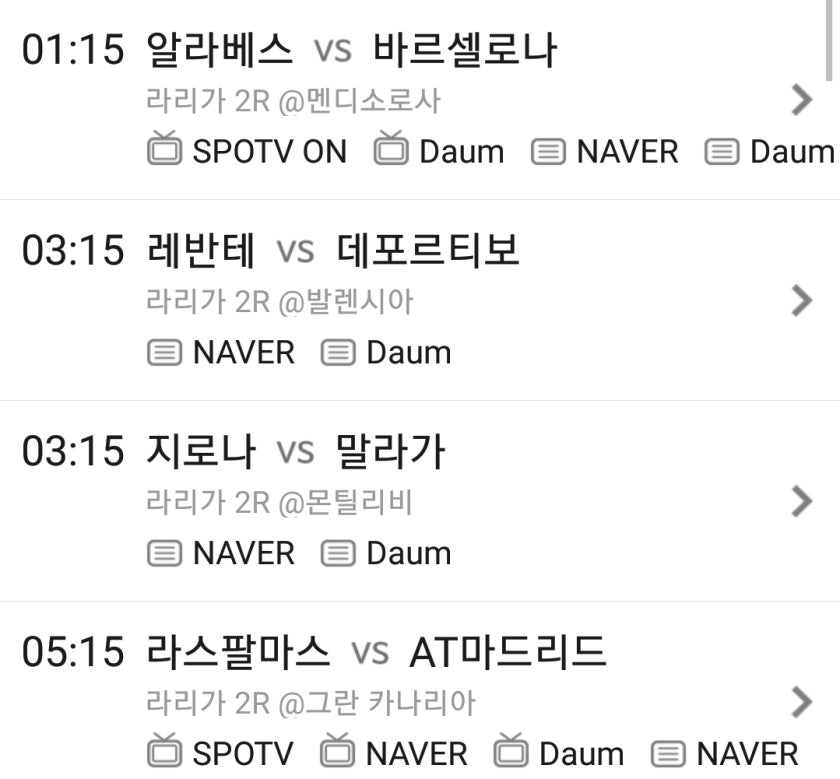 카카랑 2017.08.23*스포티비 편성표에는 바르셀로나 경기를 스포티비에서 해주고, 레알경기가 유료채널에 편성돼 있네요. 바르샤 경기 시간도 3시인데 여긴 1시로 나오네요. 뭔가 잘못된 듯?