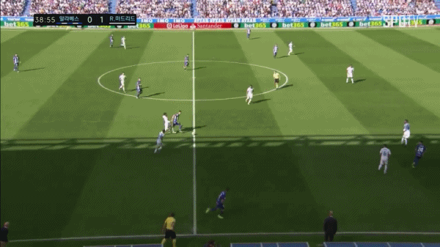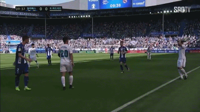 초반 알라베스가 강하게 몰아붙이는 듯 했으나, 호날두 -> 아센시오로 빠르게 사이드를 돌파한 컷백로 첫 골을 따냅니다. 세바요스가 공을 받는 과정에서 부딪히며 공을 빼앗기나 싶었는데, 다행히 때리기 좋은 위치로 공이 가고, 그걸 놓치지 않고 골로 연결합니다.