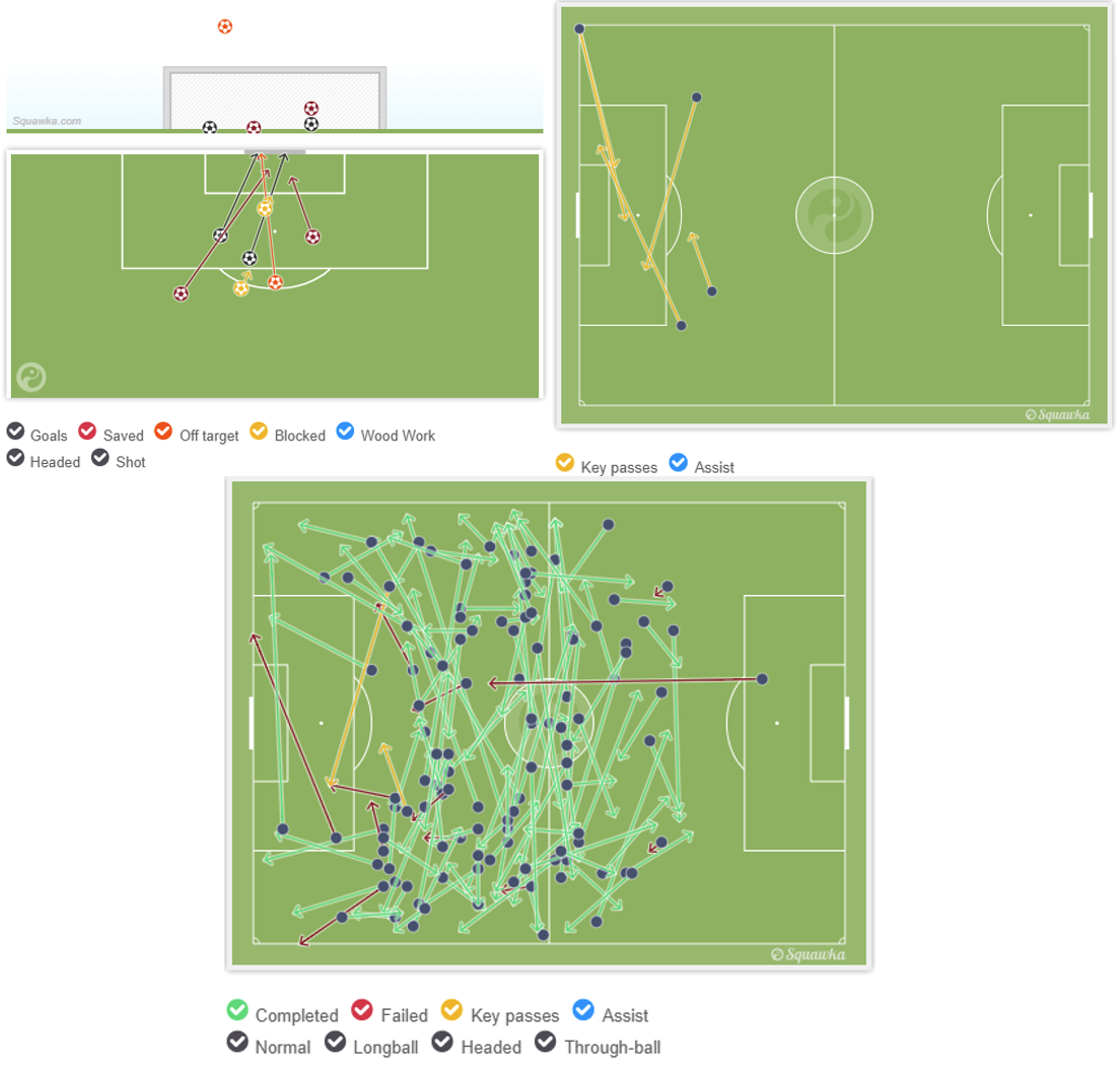 그럼에도 이번 경기는 볼도 많이 쥐었고, 골로 이어질만한 패스와 슈팅의 횟수도 괜찮게 나왔다고 생각합니다. 유효슈팅 8개, 패널티 박스 앞에서 슈팅으로 때릴 만한 패스도 10번은 나왔죠.
