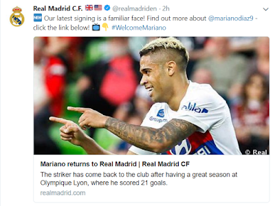기사: http://www.espn.com/soccer/soccer-transfers/story/3615459/real-madrid-re-sign-mariano-diaz-after-one-season-with-lyon