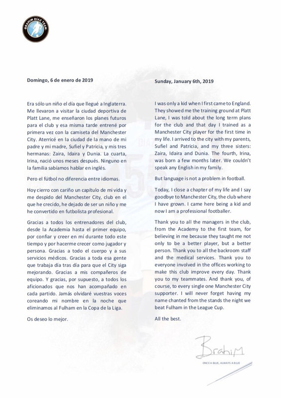 오늘 나는 인생의 한 장을 끝내고 내가 성장한 클럽인 맨시티에 작별 인사를 하려고 한다. 나는 어렸을 때 이곳에 왔고 이제는 프로 축구 선수가 되었다.