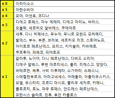 ! 이외에도 그간 우리 팀을 괴롭혀온 카메니와 카바예로 등의 이름도 찾아볼 수 있습니다!