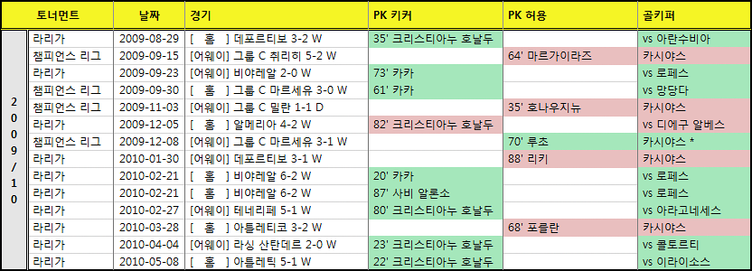 (장문!) 레알 마드리드 페널티킥 통계 2009-2019!!!