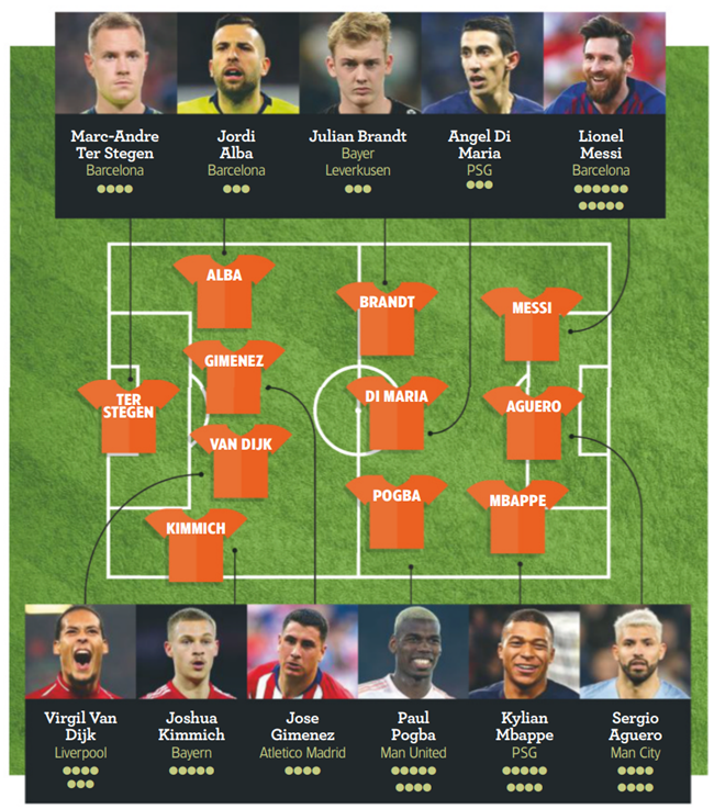 2월: 슈테겐/알바,반다이크,히메네스,키미히/포그바,디마리아,브란트/음바페,아구에로,메시