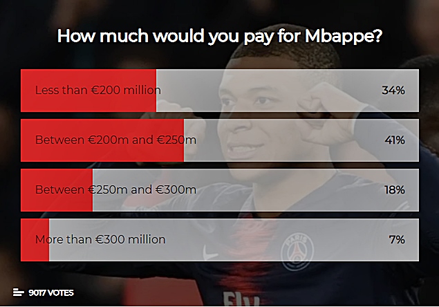 레알은 이번 여름 이적 시장의 가장 뜨거운 감자로 예상되고 있다. 그렇지만 레알의 이적자금은 무한하지 않고 선수들의 몸값은 급등하고 있으며 여러 선수들이 리스트에 오르내리고 있다. 레알의 탑 리스트에 오른 선수들, 음바페와 아자르의 적정 이적료는 얼마라고 생각하는가.