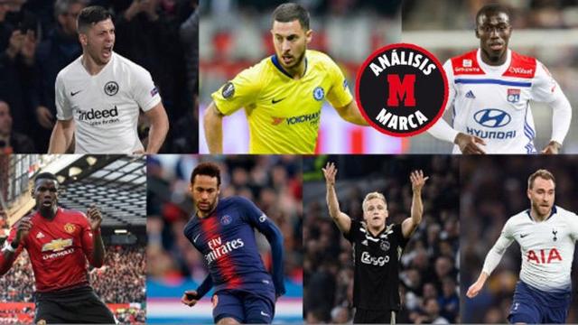 Gwyn 2019.05.12확실한 영입 대상으로 꼽힌 선수는 아자르, 멘디 정도고 포그바는 지단이, 네이마르는 페레즈가 노리는 선택지인거네요. 반 더 비크와 은돔벨레는 현재 마드리드의 중원에는 수준 미달인 자원이라는 판단이고...