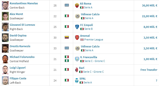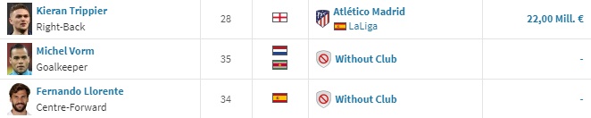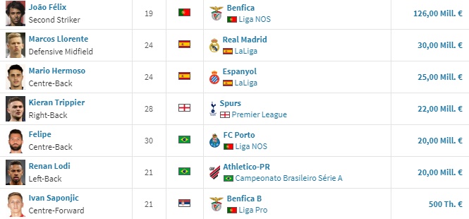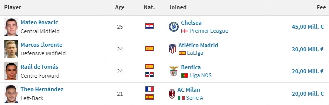 (모라타는 임대라 다음시즌으로 넘어감. 헥토르 에레라 프리영입)