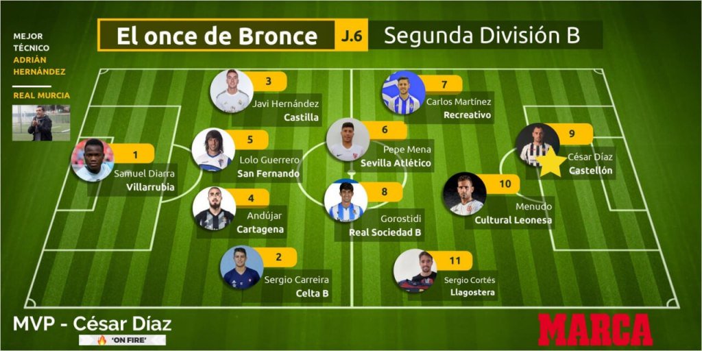 - 마르카 선정, 세군다B 6라운드 베스트XI에 하비에르 에르난데스가 뽑힘.