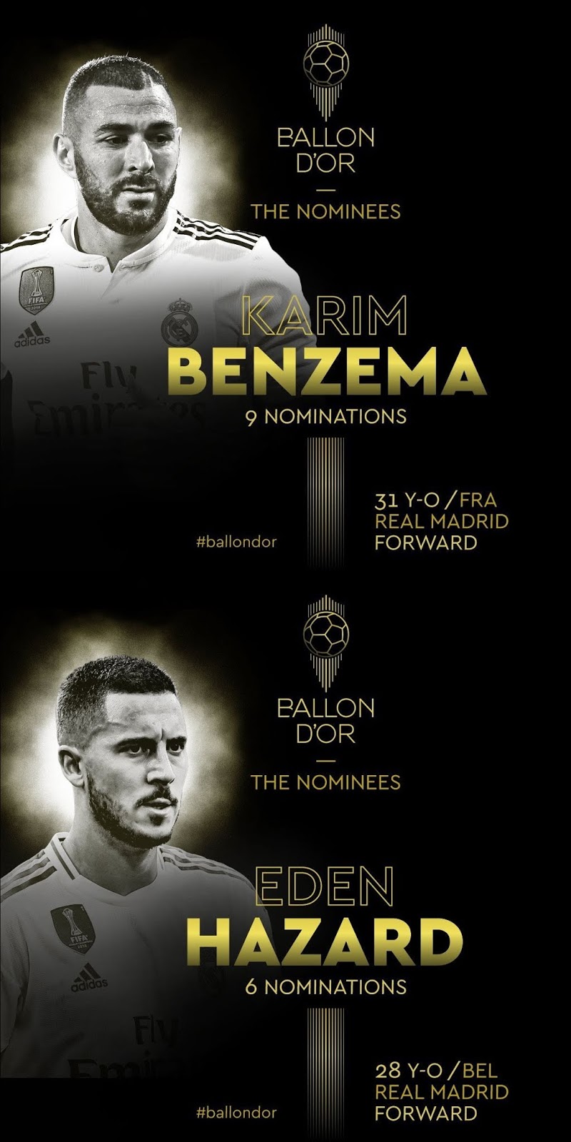 - 2019 남자 발롱도르 최종후보 30인에 벤제마, 아자르가 들어감 (+손흥민 포함)