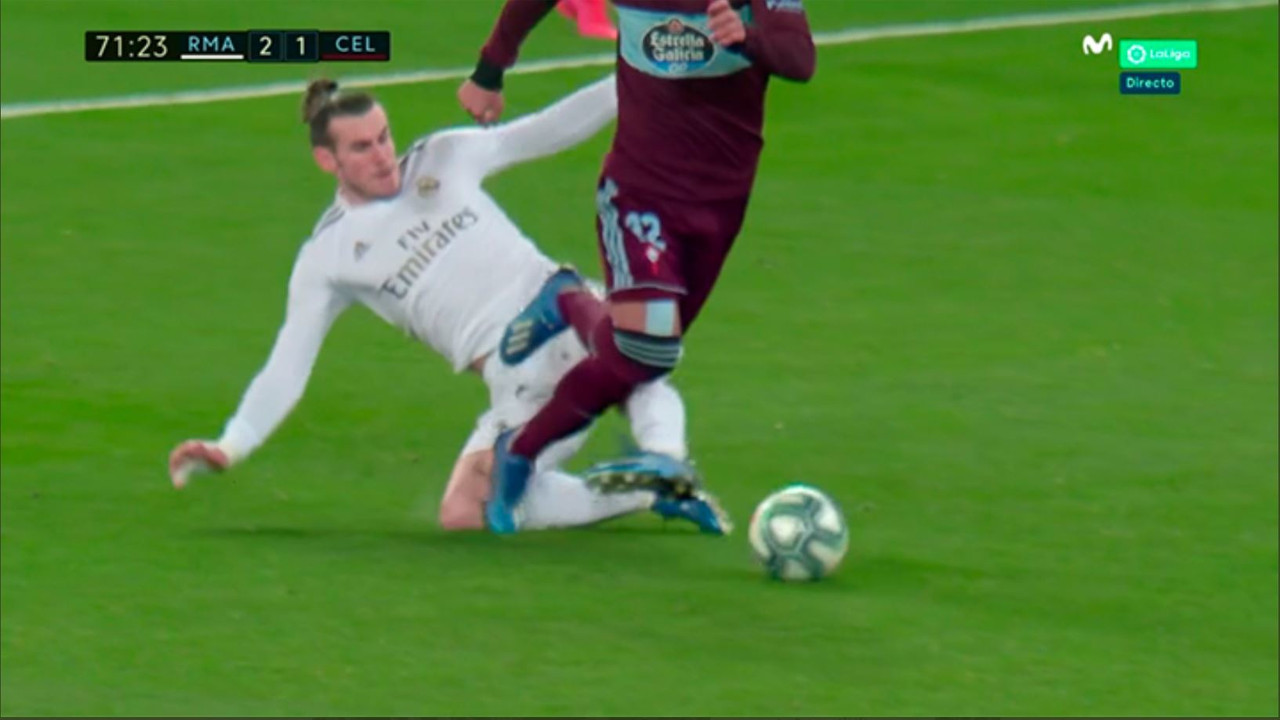 가레스 베일은 셀타 비고전에서 72분경 하피냐에게 태클을 걸어 파울을 범했고 로하스 주심은 옐로 카드를 꺼냈다.