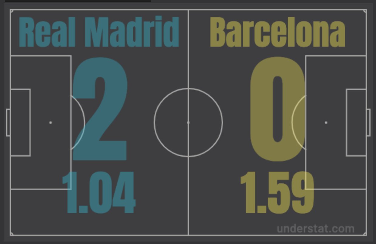 - 엘 클라시코 xG값. 레알 마드리드 1.04 / 바르셀로나 1.59