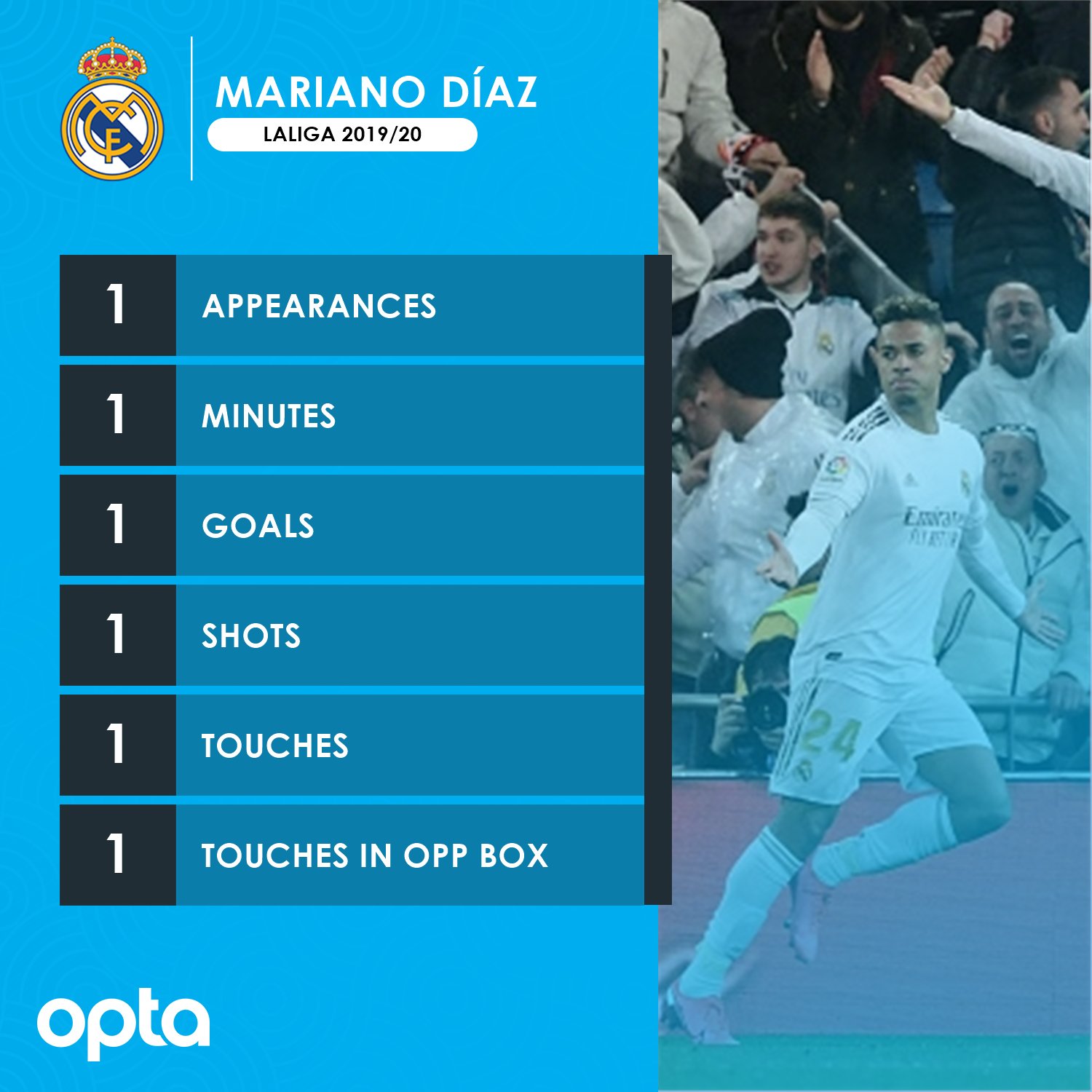 - 마리아노 이번 시즌 리그 1경기, 1분 출전, 1골, 1슛, 1터치, 1상대진영 박스 터치 기록. 이 모든 걸 엘 클라시코에서.