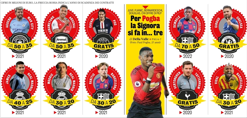이탈리아 언론발, 코로나로 인한 계약만료 예정 선수 포함 선수들의 가치 하락 예상입니다. 두 번째 포그바 내용은 유벤투스가 노리고 있다는 내용이구요. 물론 어디까지나 예상치라 포그바 같은 경우 저것보단 더 높은 이적료가 책정될 것으로 보이지만(맨유라면 저 가격에 팔 바에 안 팔고 말겠죠) 유럽 전 클럽과 리그 모두 재정 타격이 생각 이상으로 클 것으로 보여 다음 이적 시장은 카오스가 예상됩니다. 그말인 즉슨, 영입도 영입이지만 아마 다음 시장에 내놓으려고 했던, 혹은 팔려다가 못 판 우리팀 선수들도 제값 받긴 틀렸.. 지난 5년간 이적시장 보면 참 타이밍 안 맞는 것 같아여...