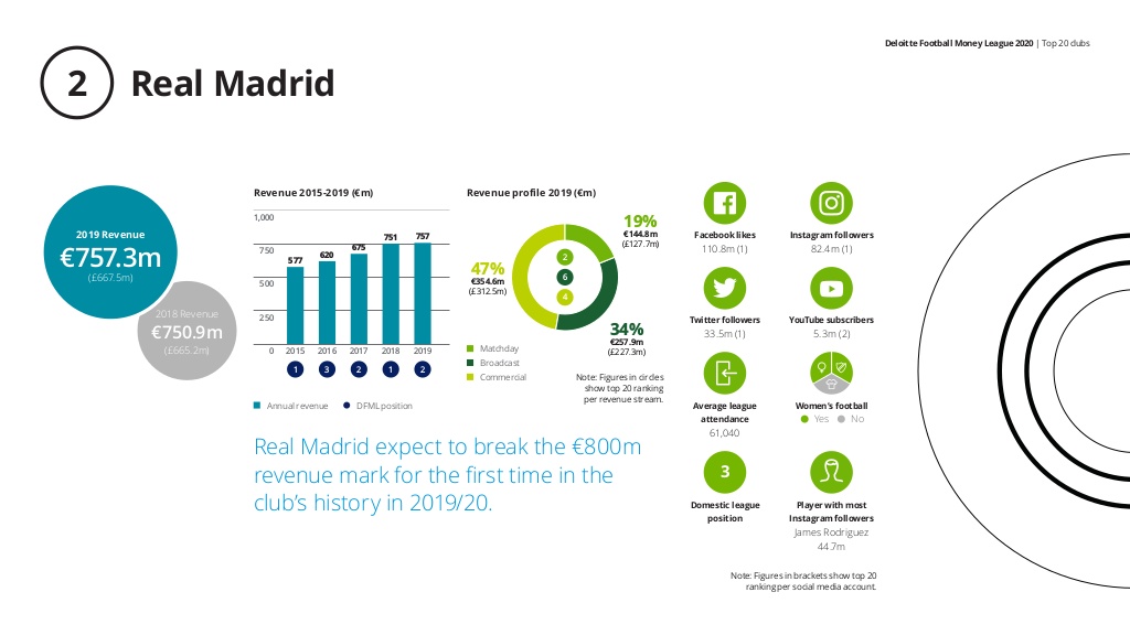 변수라면 코로나 상황에 따른 관중 허용 여부, 베르나베우 리모델링으로 인해 향후 35년간 분할 납부해야할 고정 부채 금액, 그리고 이번 시즌 성적에 따른 수익 변화 등이 있겠죠. -