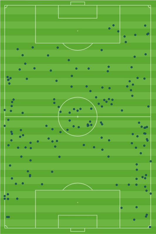 전반 아틀레티코의 5명의 미들 패스맵입니다. 그야말로 2명에게 쳐발린 5명의 모습을 저 중구난방인 패스맵을 통해서 쉽게 체감할 수 있습니다.