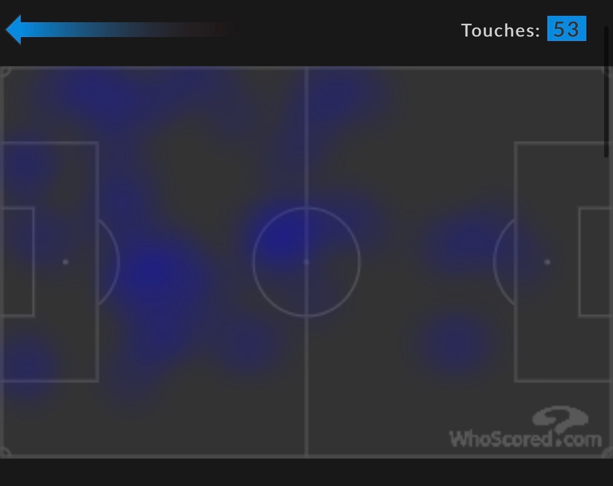 아래 히트맵은 올시즌 벤제마폼이 제일 좋았던 경기중 하나인 에이바르전 히트맵 입니다