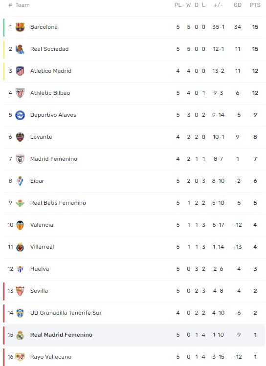 강등권에서 헤메는 레알 페메니노