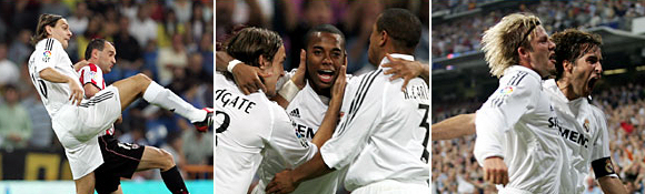 Woodgate, Pavón, Roberto Carlos; Pablo García, Gravesen (Guti 46¡¯), Beckham, Raúl (De la Red 88¡¯); Robinho y Ronaldo (Raúl Bravo 70¡¯).